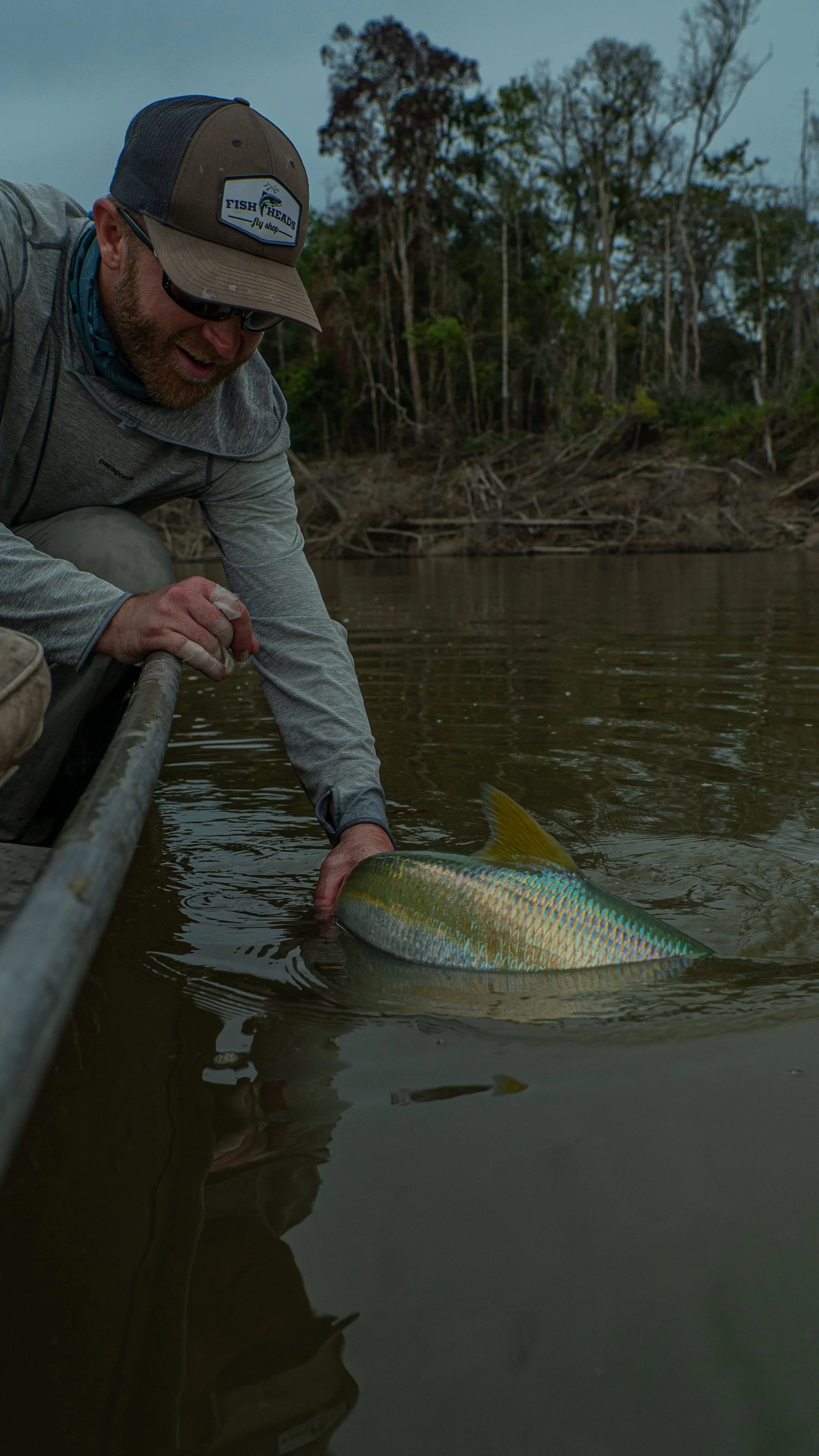 Two of the lesser known but equally amazing fish in the jungle are Sardinata and Pacu. Sadinata are a topwater friendly freshwater tarpon like fish with beautiful iridescent scales and a superb lb for lb fight. Pacu are round and tough in every way. Tough to catch but they put up one helluva fight!